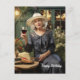 Cartão Postal Feliz aniversário Senhora no jardim com vinho e qu