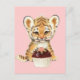 Cartão Postal Feliz Aniversário - Tigre Fofo com Bolo de Anivers