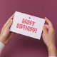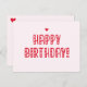 NewParkLane - Cartão Fofo, com um desejo de Feliz Aniversário em uma tipografia vermelha doce com corações pequenos, contra um fundo rosa suave.