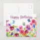 Cartão Postal Feliz Aniversário Vibrantes Flores de Pensamento e