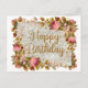 Cartão Postal Feliz Aniversário Vintage Rosas de Aquarela