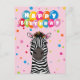 Cartão de aniversário fofo da zebra para qualquer idade.