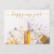 Cartão Postal Feliz ano novo Chic Dourado Champagne Streamers