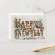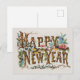 Cartão Postal Feliz Ano Novo em Troncos de Árvores, Bolotas e Fl