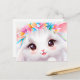 Cartão Postal Feliz Coelhinho de Bebê com Flores e um Arco-Íris