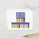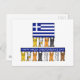 Duas filas de gatinhos de desenho animado, a fileira de cima segurando uma grande bandeira grega e a fileira embaixo segurando um longo e fino banner azul que diz "Feliz Dia da Independência Grega".