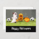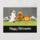 Cartão Postal Feliz Dia das Bruxas de Futebol com bolas de grama