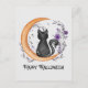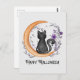 Cartão Postal Feliz Dia das Bruxas - Gato Negro na Lua Crescente