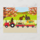 Cartão Postal Feliz Dia de Ação de Graças Labradores e Trator
