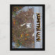 Uma foto de uma ascensão de esqueleto de plástico falsa do chão cercado por marigolds é mostrada na frente deste cartão-postal. Uma borda preta rodeia a foto. O texto em branco e laranja, "Feliz Dia das Bruxas", é impresso na parte inferior da foto.