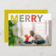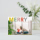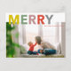 Este cartão postal de fotos de feriado apresenta FELIZ de várias cores no topo. Você pode substituir a foto de espaço reservado pela sua própria foto de feriado.