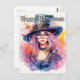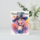 Este cartão postal super vibrante apresenta uma ilustração de uma bruxa conhecedora. Este cartão postal faria uma saudação de Halloween verdadeiramente encantadora para os melhores amigos e familiares.