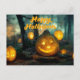 Cartão Postal Feliz Halloween Pumpkins e Aranha Web