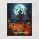 Cartão Postal Feliz Halloween Skeleton Skull Casa Assombrada
