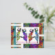 Celebrar a essência de Kwanzaa com esta estonteante design postal. Apresentando mulheres afrocêntricas silhuetas realizando uma alegre dança no pé de feriado, esta ilustração mostra lindamente a força, graça e beleza das mulheres negras. As cores vibrantes e padrões ousados honram a rica herança cultural do continente africano, fazer este postal como um complemento perfeito para as celebrações de Kwanzaa.