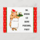 Cartão de Natal criativo com porco engraçado trazendo o pudim de figgy.