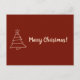 Este postal apresenta um design clássico e elegante para enviar suas saudações festivas nesta temporada de festas. A frente exibe uma árvore de Natal minimalista, esboçada em um branco delicado que sutilmente contrasta com o rico fundo vermelho profundo, capturando as cores tradicionais do feriado. No topo da árvore, está uma estrela brilhante, que vai até a base da árvore, criando um símbolo simples, mas pungente, da alegria de Natal. A saudação "Feliz Natal!" é apresentada de forma destacada num guião fluente e gracioso que complementa o design linear da árvore. Esta mensagem eterno transmite calorosamente o espírito da estação aos amigos, à família ou aos colegas. Todos os aspectos deste cartão postal, desde os elementos visuais frontais até a mensagem sentida no verso, são totalmente personalizáveis. Isso permite que um toque pessoal, como uma mensagem personalizada, seja adicionado, fazer o cartão de uma correspondência única e especial que os destinatários certamente apreciarão. Quer você esteja querendo enviar uma saudação tradicional ou algo mais personalizado, este cartão-postal oferece uma canvas perfeita para expressar seus desejos de feriado.