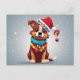 Cartão Postal Feliz Natal Cachorrinho Bonito Enfeitado Chapéu de