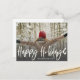 Cartão de Natal moderno com caligrafia branca "Felizes Feriados" com gradiente. Personalize com sua própria foto e seu nome de família para tornar este modelo exclusivo.