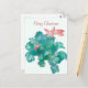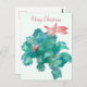 Um cartão de posto bonito Feliz Natal com um cacto de Natal florescente com três gotículas de água na folha inferior ilustrada com aquarela. O fundo é um verde muito claro para coordenar com as folhas e você pode personalizar a mensagem para ajustado de suas necessidades.