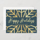 Simples Feriados Felizes, flocos de neve de ouro e cartão postal azul de negócios. Personalize todos os campos de texto para trazer um toque especial ao seu papel de carta de feriado.