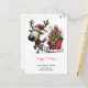 Rena fofa vestindo um chapéu de Papai Noel puxando um trenó cheio de presentes em um cartão postal. O texto pode ser alterado. Gráfico adquirido com uso comercial assistido por IA. Arte: RedHeronLighthouse