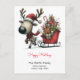 Cartão Postal Feliz Natal Rena Puxando um Trenó