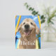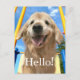 Este cartão-postal alegre apresenta uma fotografia de um sorridente cão que recupera o ouro, juntamente com a palavra Olá! O texto original personalizável diz: "Só queria dizer oi!"