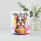 Este cartão de aniversário único apresenta um cachorrinho tendo uma festa de aniversário. Por favor, sinta-se à vontade para personalizar este cartão com o seu texto para torná-lo único e singular.
