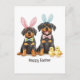Cartão Postal Felz pascoa Rottweiler Cães Coelhinhos