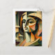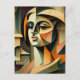 Cette carte est ornée de l'image d'une femme. Elle est représentée par des formes géométriques complexos et des couleurs vives, avec des party du corps décomposées et représentées sous différents angles. Cela crée une impressionsion de moumotion et de profondeur, tout en ajoutant une touche artistique único.