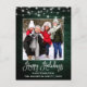 Cartão-postal de Férias Feliz Feriados da Família Moderna em Caligrafia Roteiro - Madeira Verde País Rústica com Luzes de Cordas