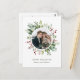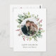 Esta foto de Natal | Características do cartão de férias pintado de aquarela eucalipto, folhas verdes, bagas vermelhas, ramos de pinho com uma armação em círculo branco. Para personalização mais avançada deste design, clique no link "personalizar mais". Itens correspondentes também estão disponíveis.