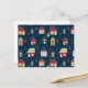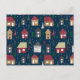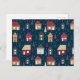 Este belo cartão postal de Natal imobiliário apresenta um padrão festivo de casas num céu azul de meia-noite. Este bonito design é decorado com pinheiros e neve branca.