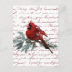 Cartão Postal Feriado Natal Red Cardinho Bird Script Francês
