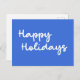 Este cartão-postal fofo simplesmente tem a frase Felizes Feriados em um roteiro cômico com letras cursivas em um fundo azul.