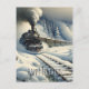Cartão postal de Natal personalizado ou de feriados felizes. . O velho trem retrô vintage em uma linda cena de inverno de neve nas montanhas.