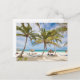 Destino de férias de praia tropical com hammocks, cadeiras de praia e palmeiras em Tulum, México.