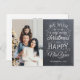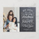 Cartões de natal de fotografia movidos pela tipografia com as palavras "desejamos-lhe um Natal muito feliz e um Feliz ano novo".