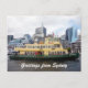 Saudações do cartão postal de Sydney, com o famoso cartão verde e ouro Sydney Ferry no King Street Wharf perto de Querido Harbor, Sydney, Austrália - cartão postal personalizável.
