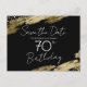 Design elegante com respingos de tinta dourada falsa. Todo o texto é ajustável e fácil de alterar para as necessidades da sua festa. Ótimo modelo de design elegante para 70 anos. Save the Date