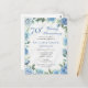 Elegante azul e branco com o Dsky Sage Green Greenery Floral Frente design de aniversário de casamento.