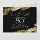 Design elegante com respingos de tinta dourada falsa. Todo o texto é ajustável e fácil de alterar para as necessidades da sua festa. Ótimo modelo de design elegante para 80º aniversário. Salve a Data