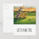 Celebre 80 anos incríveis no green com este convite de cartão-postal de aniversário de 80 anos de "Vamos Par-Tee" de golfe. Com uma bandeira de golfe clássica e bolas de golfe detalhadas em um green de putting iluminado pelo sol, este design elegante de aquarela combina a energia de celebração divertida com o charme atemporal de um clube campestre.