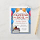 Este convite de fervura de lagostim azul e dourado é personalizável para o seu evento especial. Com um fundo azul-turquesa com pérolas douradas e lagostins, este design é perfeito para o seu aniversário, festa de noivado, formatura ou qualquer evento que você esteja organizando. O lagostim ilustrado em estilo cartoon junto com balões na frente adicionam um toque extra de diversão às fontes serifadas e manuscritas. A palavra "lagostim" também é personalizável para qualquer "fervura" que você possa estar fazendo, incluindo frutos do mar, lagosta, caranguejo, etc.