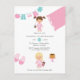 Convite de festa de aniversário de pijama feminino rosa e azul personalizável para os detalhes do seu evento.