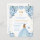 Este convite de aniversário elegante e glamoroso apresenta uma bela princesa com cabelo loiro em um vestido azul claro. O texto combina caligrafia manuscrita e fontes modernas sem serifa para um visual clássico e sofisticado. As arranjos florais, borboleta e confetes dourados criam a combinação perfeita de rústico e chique.