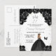 Este convite de festa de aniversário elegante e glamoroso apresenta uma bela princesa com cabelos loiros em um vestido de baile preto. O texto combina caligrafia manuscrita e fontes modernas sem serifa para um visual sofisticado e elegante. Os arranjos florais, borboleta e confetes prateados criam a combinação perfeita de rústico e chique.