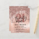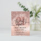 Cartão postal de convite de festa de 21º aniversário moderno. O design apresenta fundo com brilho e glitter rosa dourado com gotas de glitter cintilantes e tipografia ''vinte e um''. Personalize com data e nome.
