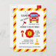 Convite de festa de aniversário de bombeiro com um layout simples em preto e branco personalizável para os detalhes do seu evento. Gráficos por PremiumClipart.